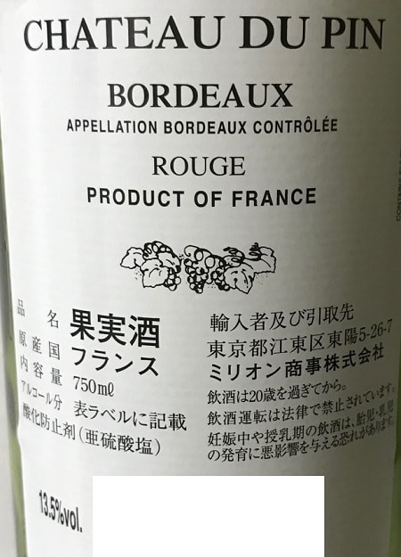【シャトー・デュパン・ルージュ】ブドウ、出芽酵母、亜硫酸塩