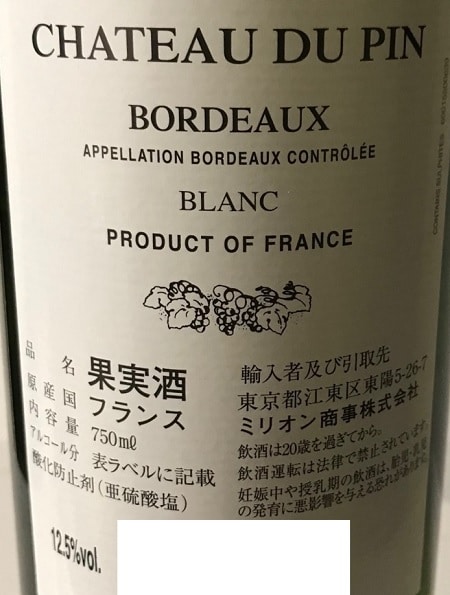 【シャトー・デュパン・ブラン】ブドウ、出芽酵母、亜硫酸塩