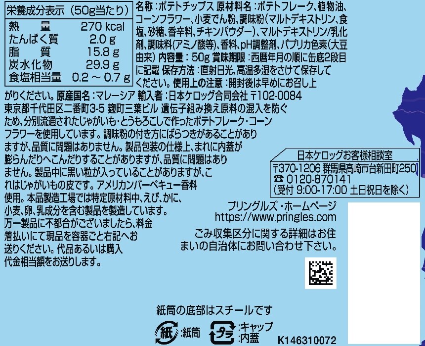 - プリングルズ アメリカンバーベキューS缶 50g