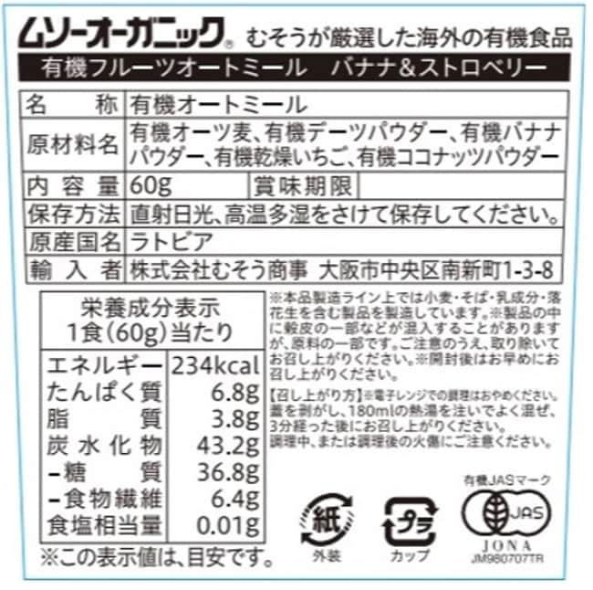・JAS有機フルーツオートミール バナナ&ストロベリー 60g×12個 - 賞味期限