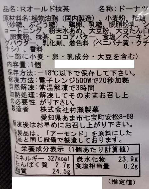 [18個]村瀬製菓 Rオールド抹茶 60g | 外はサクサク、中はしっとり食感昔ながらのドーナツに抹茶味チョコをつけました