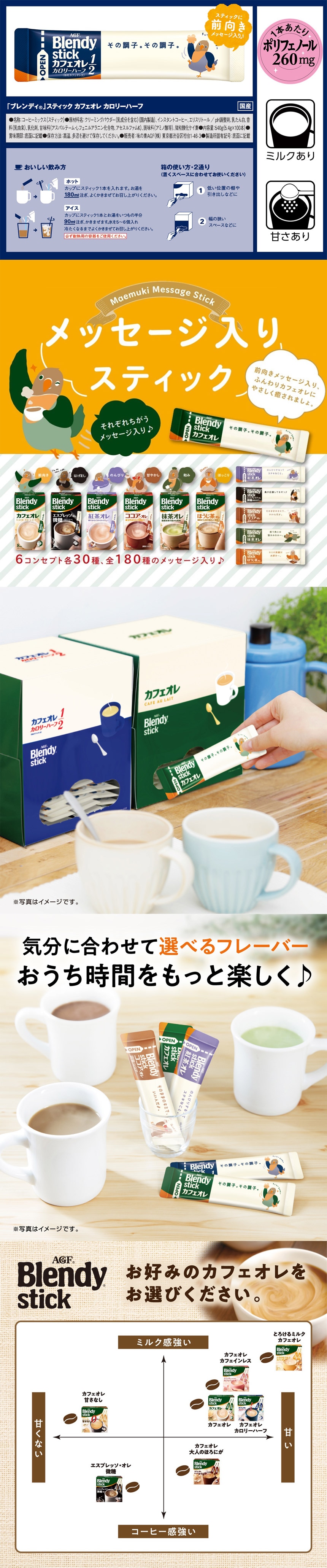 AGF(エージーエフ)「ブレンディ」 スティック カフェオレ カロリーハーフ100本は、カフェオレのおいしさはそのままにカロリー半分。
