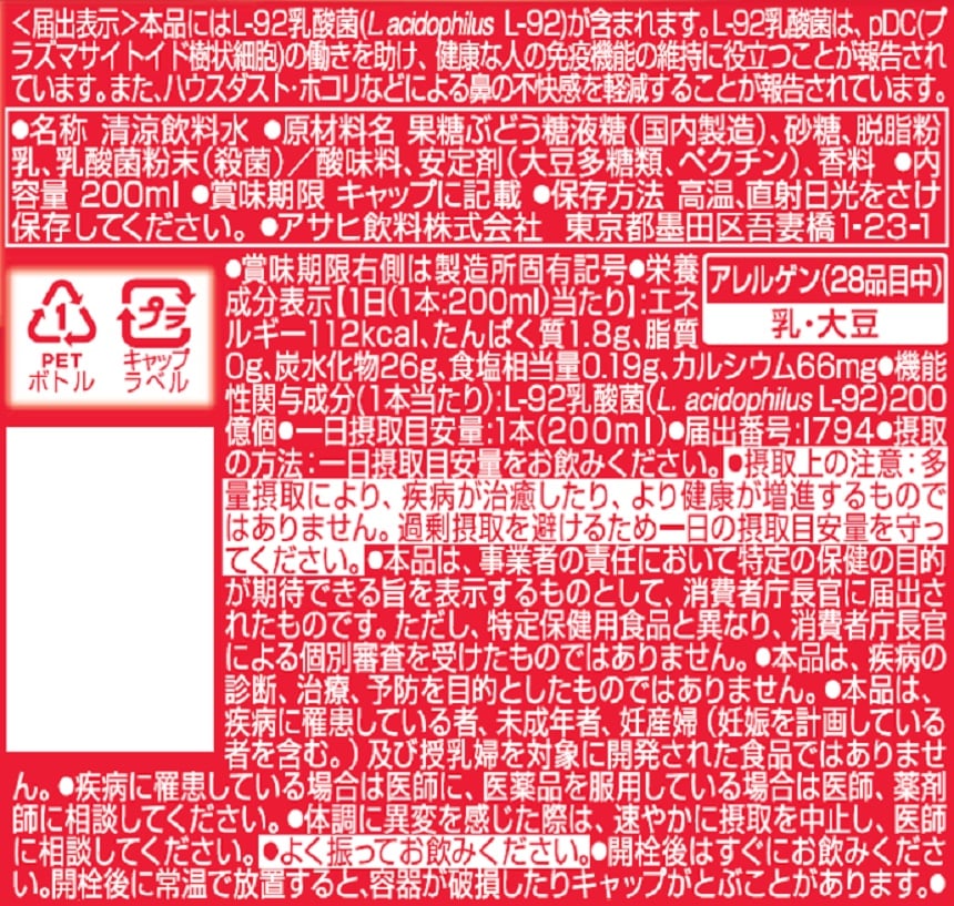 [24本]【機能性表示食品】アサヒ飲料 「PLUSカルピスⓇ 免疫サポート」PET 200ml