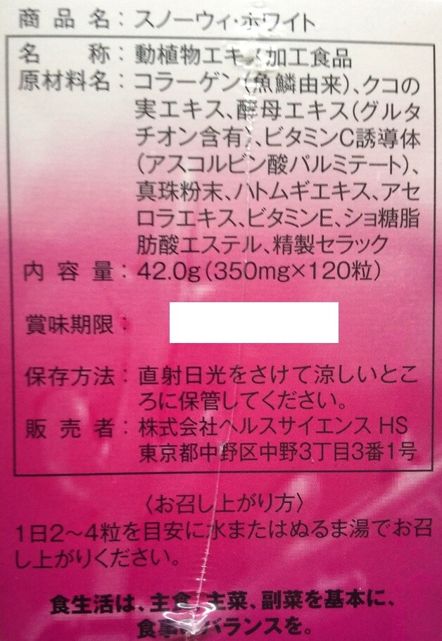 [16個]ヘルスサイエンス スノーウィ・ホワイト 42g(350mg×120粒) | ~あなたにキレイな魔法~
