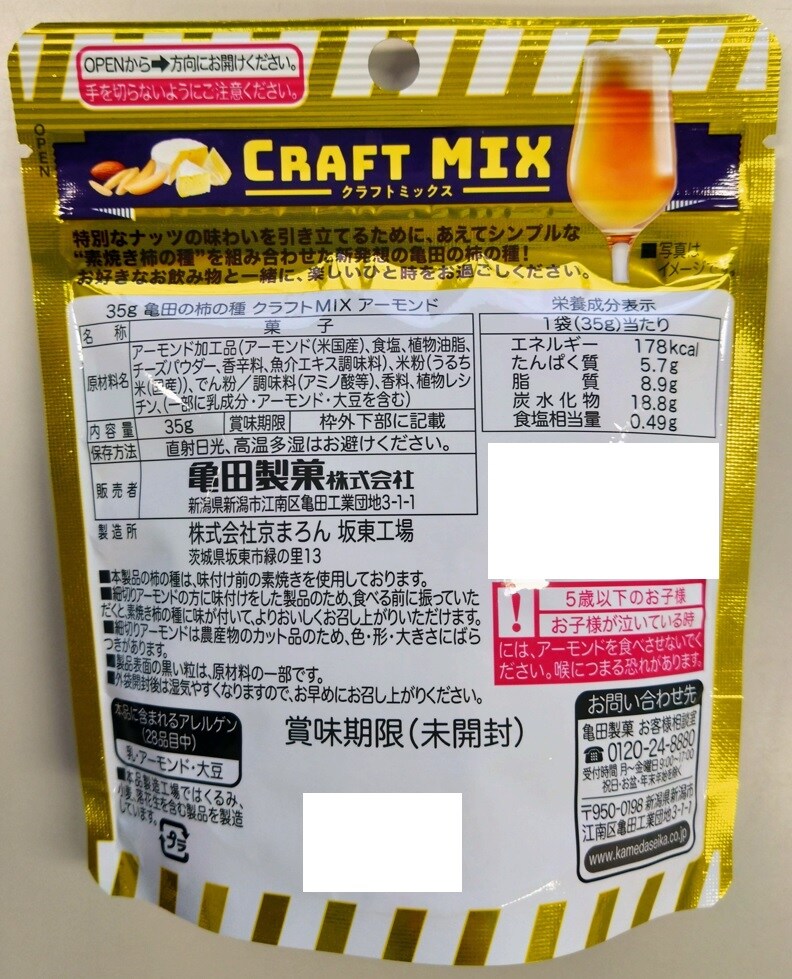 - 亀田の柿の種 クラフトMIXアーモンド 35g