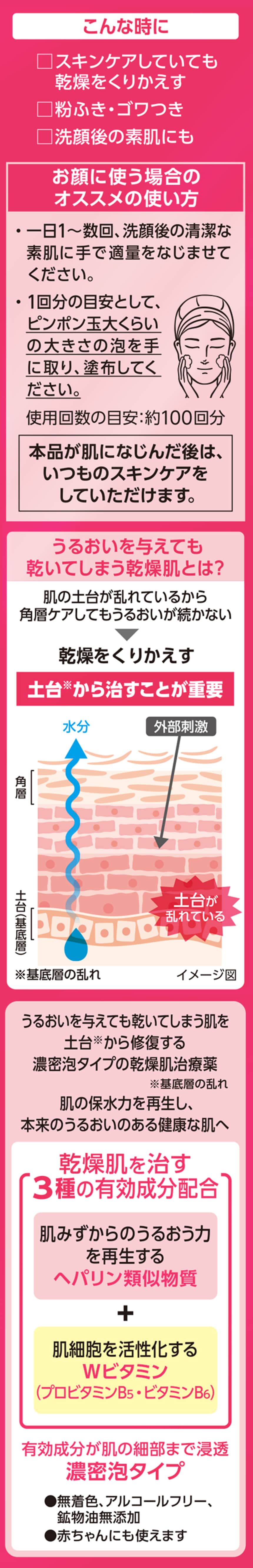 うるおいを与えても乾く乾燥肌を「土台*から治す」ブーストフォーム (泡状のエアゾール剤)。