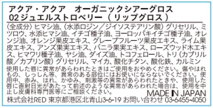 - アクア・アクア オーガニックシアーグロス 02 ジュエルストロベリー