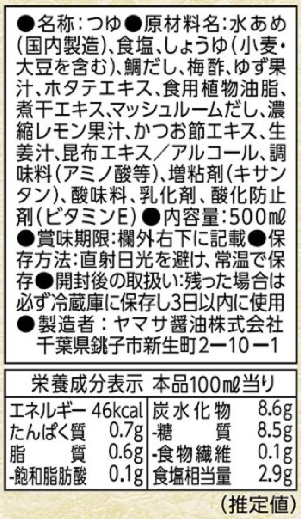 うすくち醤油・天日塩・ゆず果汁使用です。