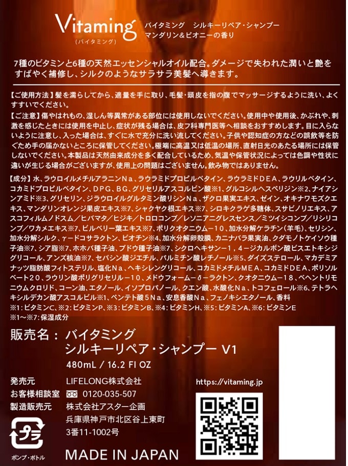 - ・バイタミングシルキーリペアシャンプー本体 480ml×2個