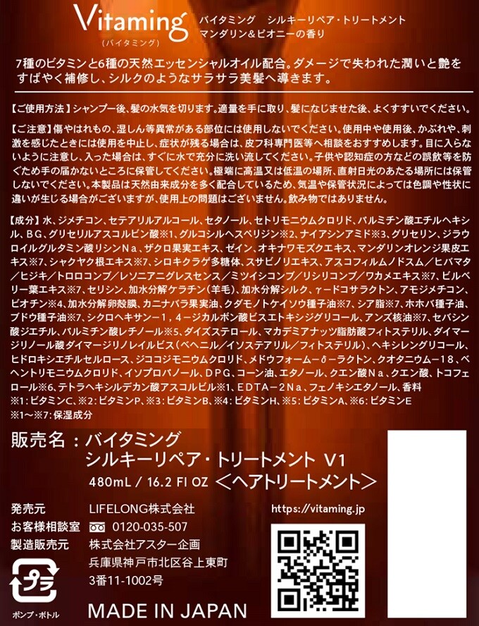 ・バイタミングシルキーリペアトリートメント本体 480ml×2個