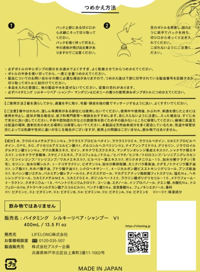 ・バイタミングシルキーリペアシャンプー詰替え 400ml×2個