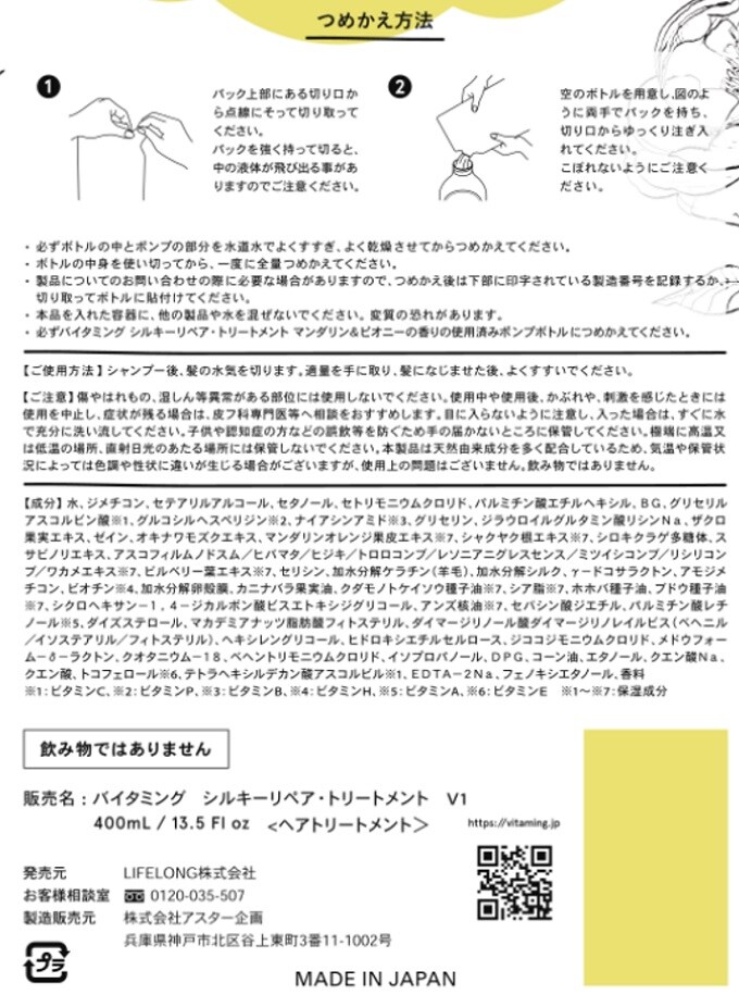 ・バイタミングシルキーリペアトリートメント詰替え 400ml×2個 - 申込可能個数