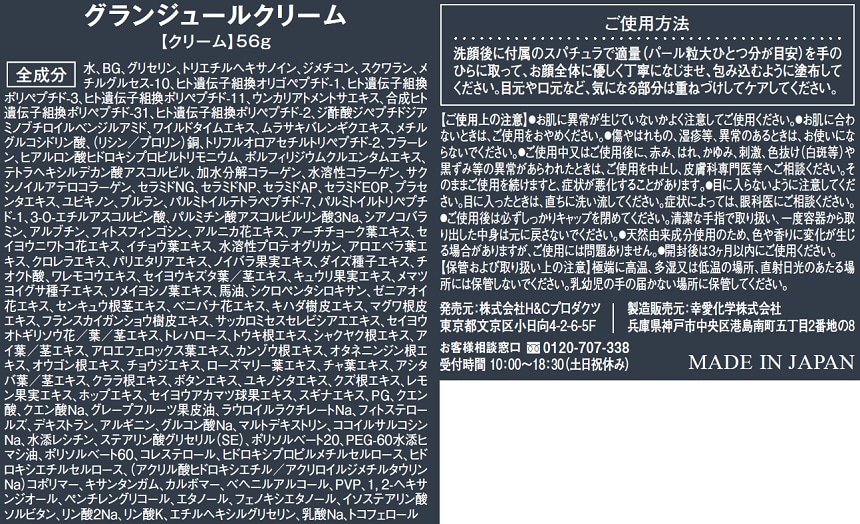 [1個]H&Cプロダクツ グランジュール 56g | 高級エステ仕様の1塗り30秒15役プレミアムクリーム。世界的権威ある化粧品グランプリ成分など計74種を凝縮。