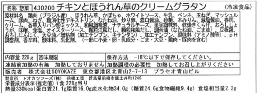 ・食のそよ風 kanau チキンとほうれん草のクリームグラタン 228g×1袋