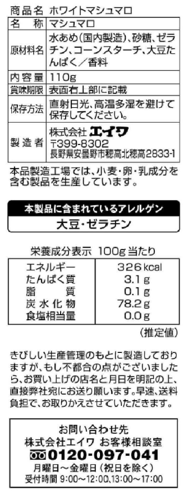 [24個]エイワ ホワイトマシュマロ 110g | 正統派の美味しさ
