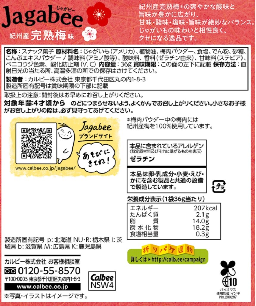 [24個]カルビー Jagabee 紀州産完熟梅味 36g | 紀州産完熟梅の爽やかな酸味と旨味が豊かに広がる