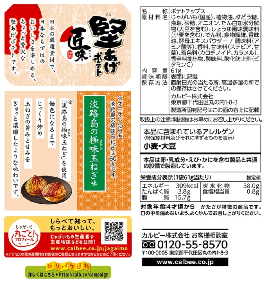 ・堅あげポテト 匠味淡路島たまねぎ味 61g×12個 - 賞味期限