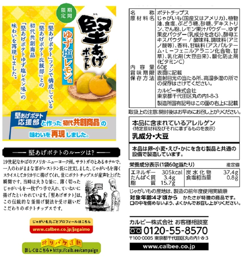 [24個]カルビー 堅あげポテトゆず塩レモン味 60g | さっぱりとしたゆず塩レモン味