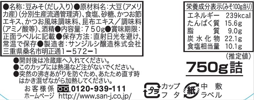 [2種計12個]サンジルシ醸造 だし入り料亭赤だし 750g / だし入り料亭合わせ 750g
