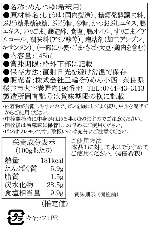 ・つけ麺つゆ 濃縮合鴨 145ml×1本 - 賞味期限