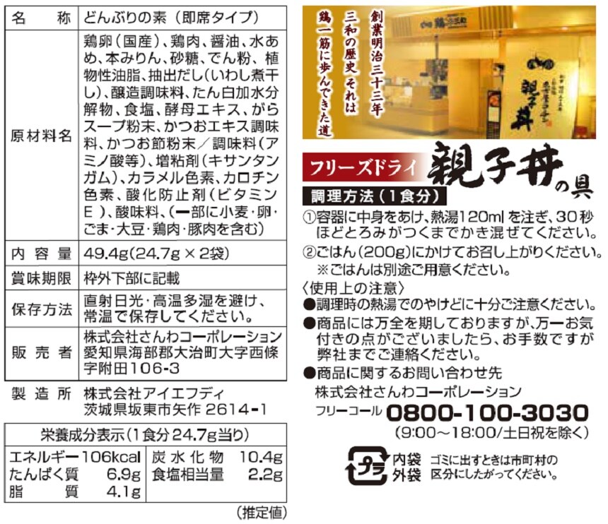 - ・フリーズドライ親子丼の具 計20食(24.7g×2食×10個)