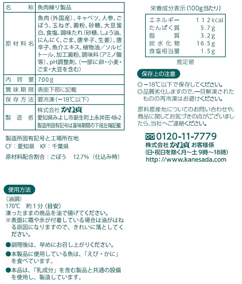 [12袋]かね貞 きんぴらごぼうのつまみ揚げ小口包装 700g | お魚すりみにシャキシャキのごぼうや人参を入れ、一口サイズのつまみ揚げにしました。