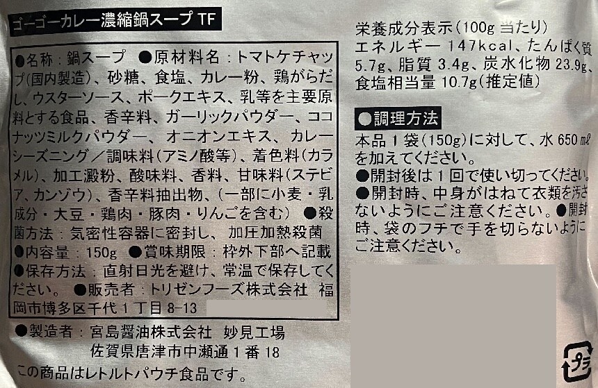 [60個]トリゼンフーズ ゴーゴーカレー濃縮スープ 150g | スパイスの辛さと鶏がらだしのコクがやみつきの旨さです。