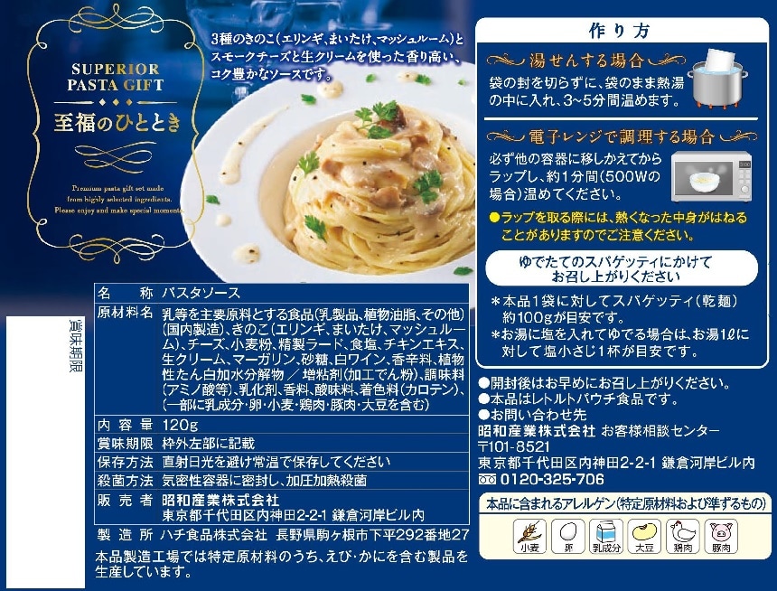 [2種計60個]昭和産業 粗挽き肉のボロネーゼ 120g / 3種のきのこの燻製薫るチーズクリームソース 120g