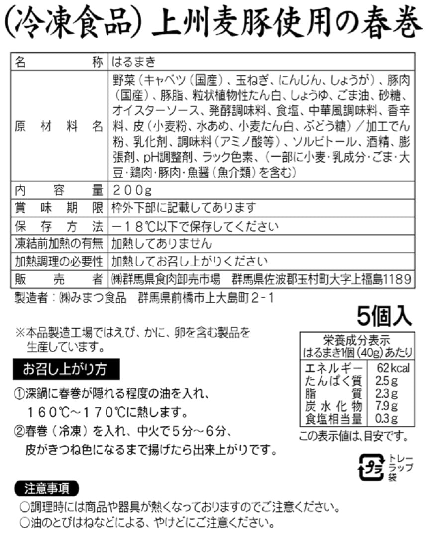 - ・上州麦豚春巻き 200g×5袋