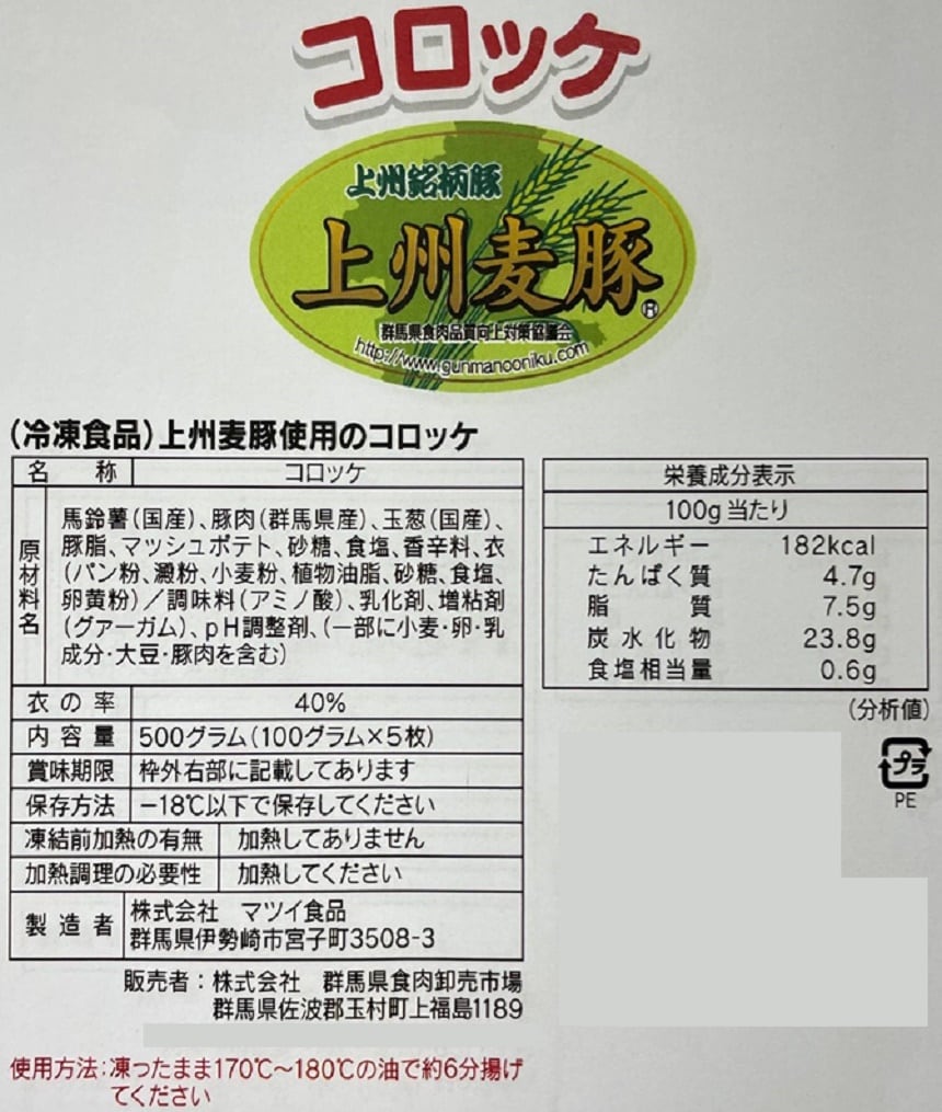 群馬県産の上州麦豚を使ったコロッケです。