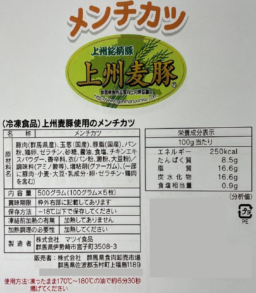 ・上州麦豚メンチカツ 500g×5袋 - 賞味期限