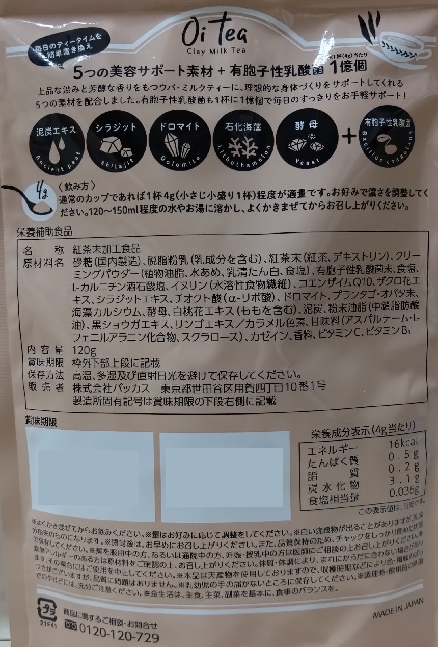 [計360杯]バッカス Oitea オイティー クリームミルクティー 120g(30杯分)×12袋 | 5つの美容サポート素材+有胞子性乳酸菌1億個※1杯(4g)当たり