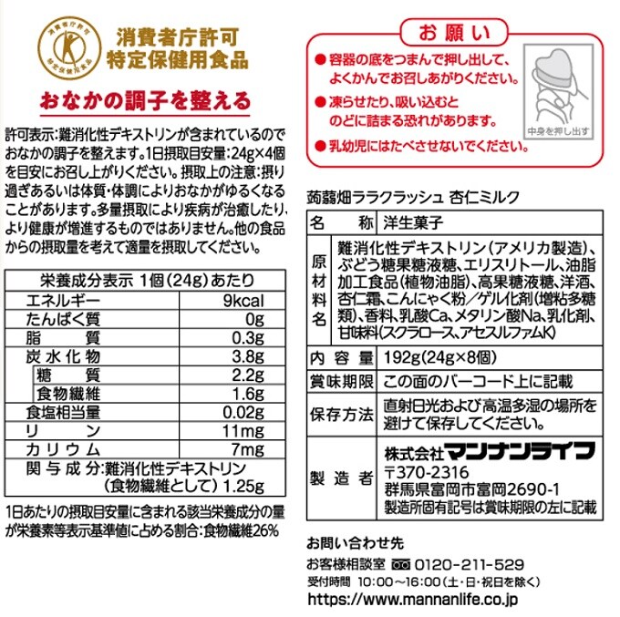 - 【特定保健用食品】蒟蒻畑ララクラッシュ 杏仁ミルク 192g(24g×8個)