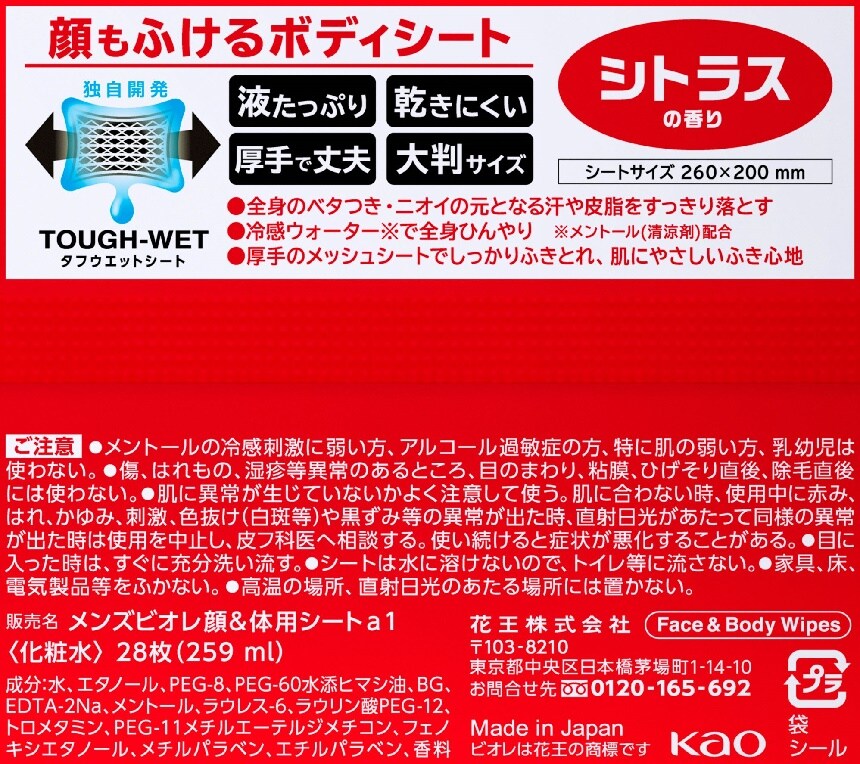 [12個]花王 メンズビオレ 顔もふけるボディシート ポケモンデザイン シトラスの香り 28枚 | 液たっぷり乾きにくい!大判!顔も体もこれ 1 枚!