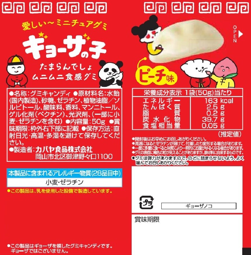 [64個]カバヤ食品 ギョーザの子 50g | ギョーザの見た目を再現した、インパクト大のグミ