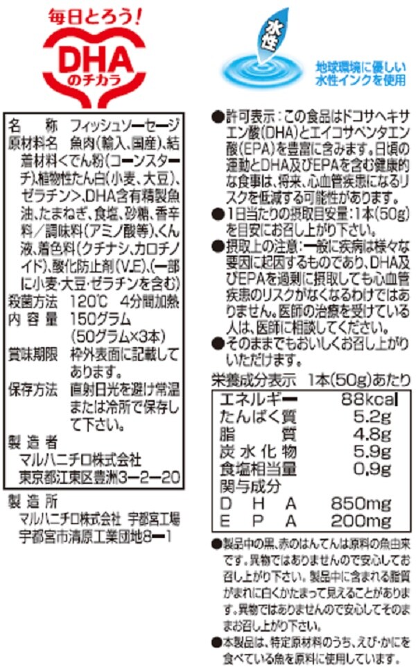 許可表示:この食品はドコサヘキサエン酸(DHA)とエイコサペンタエン酸(EPA)を豊富に含みます。