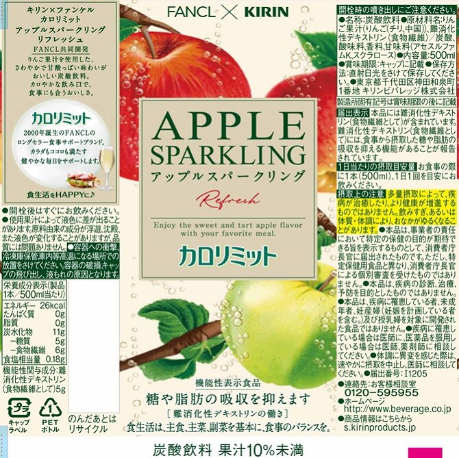 - 【機能性表示食品 】キリン×ファンケル カロリミット アップルスパークリング リフレッシュ PET 500ml