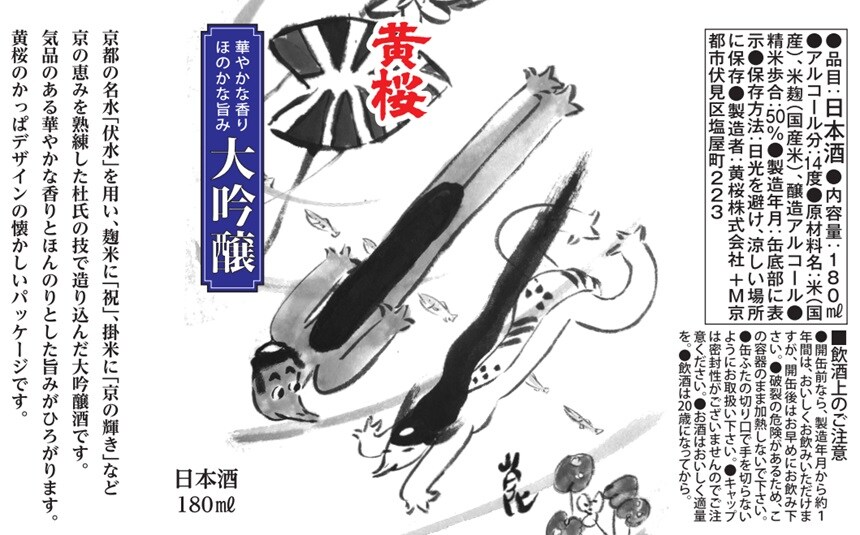 高い回収率とリサイクル率で環境に優しく品質保持にも優れたアルミ缶容器に、京都の名水「伏水」と麹米に「祝」、掛米に「京の輝き」など、京の恵みで造り込んだ華やかな香りとほのかな旨みの大吟醸酒を詰めました。