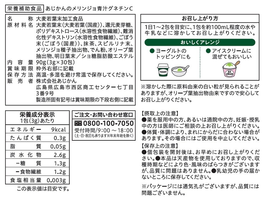 - あじかんのメリンジョ青汁 グネチンC 30包入