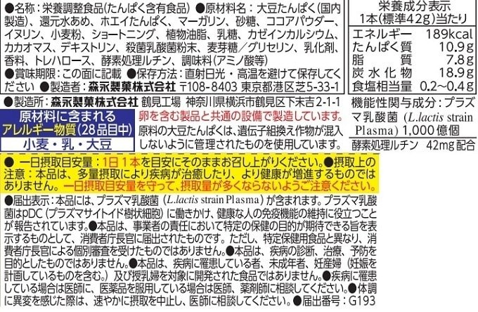 1本でタンパク質10g配合、健康な人の免疫機能の維持をサポートする機能性表示食品のプロテインバーです。