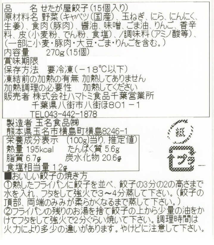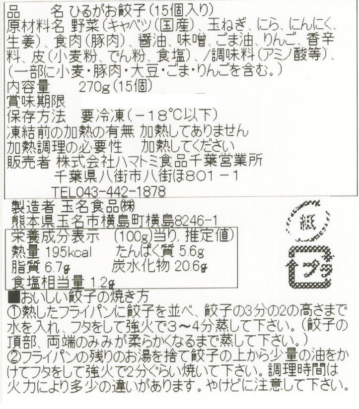 ・ひるがおの餃子 270g(15個)×1袋 - 申込可能個数