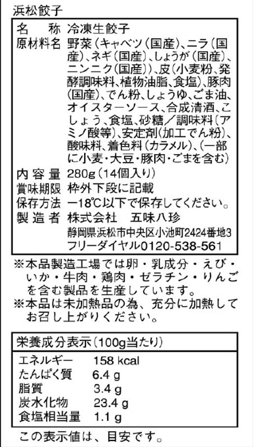 - ・浜松餃子 計28個(280g(14個入)×2袋)