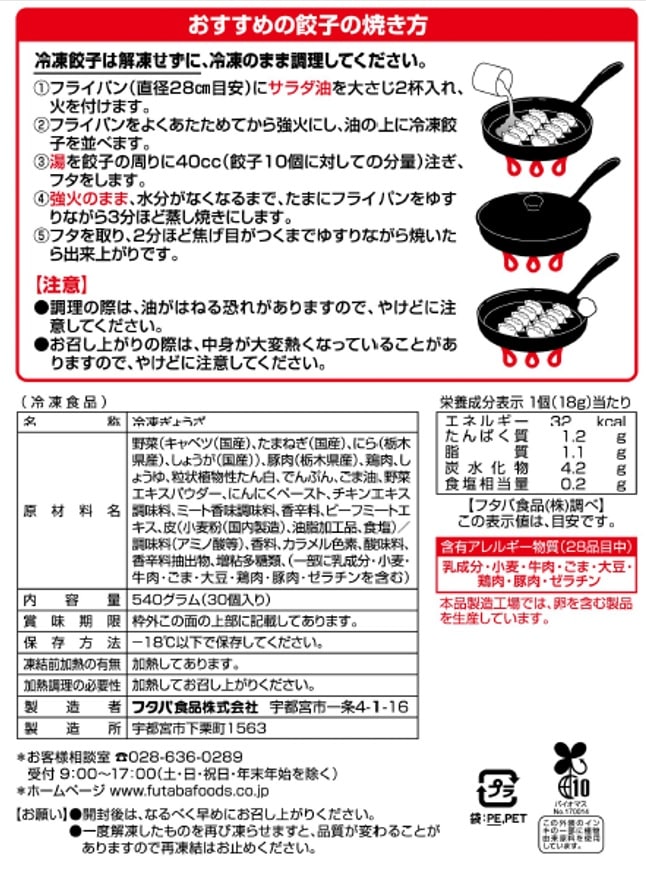袋のパッケージ裏面に焼き方が記載されているため、どなたでもご家庭で本格的な宇都宮の餃子をお楽しみいただけます。
