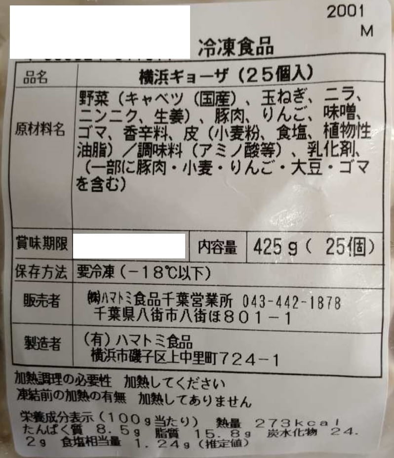 ・横浜餃子マイルド 計25個(425g( 25個入)×1袋) - 賞味期限