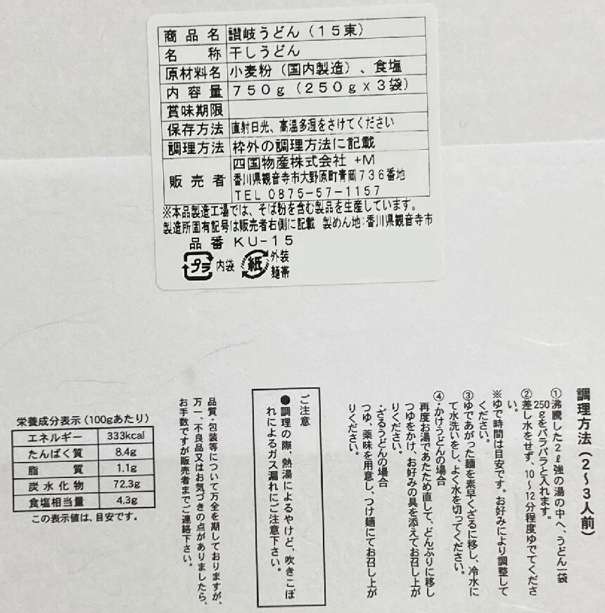 - 讃岐うどん (干しうどん) 750g(15束)