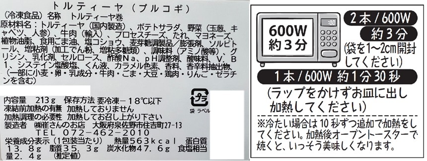 [10個]崔さんのお店 冷凍 トルティーヤ プルコギ 213g | 甘辛い牛焼肉が入ったトルティーヤです。