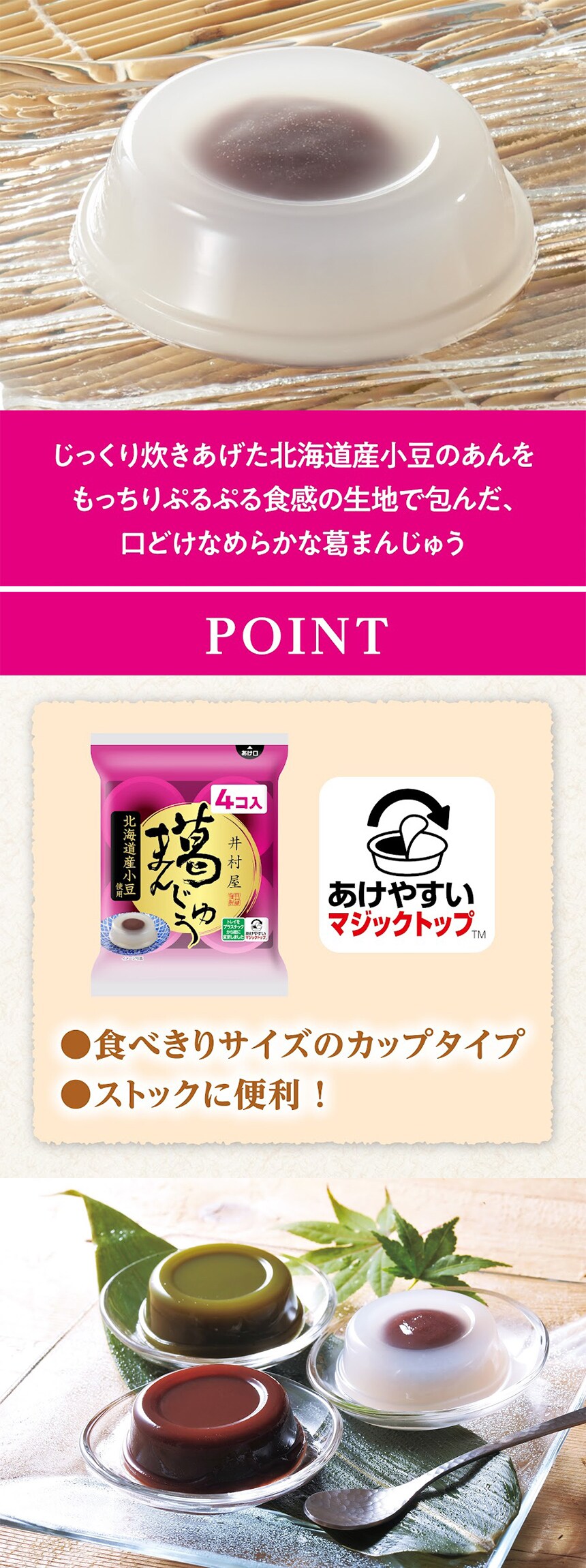 [計40個]井村屋 葛まんじゅう 4個入×10袋 | じっくり炊きあげたあんをもっちりぷるぷる食感の生地で包んだ口どけなめらかな葛まんじゅうです。