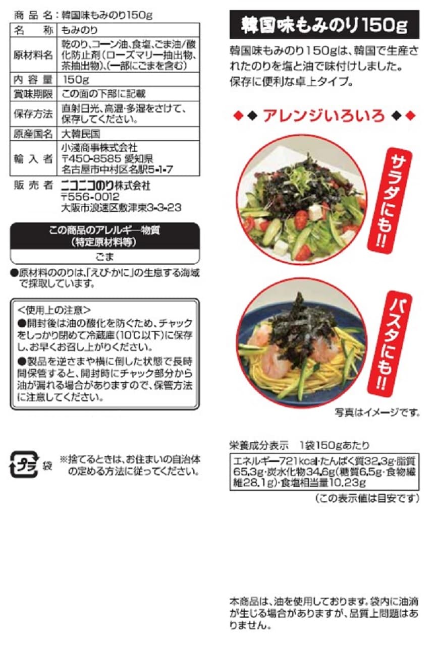 [6袋]ニコニコのり 韓国味もみのり 150g | たっぷり使える韓国味もみのり大容量タイプ☆