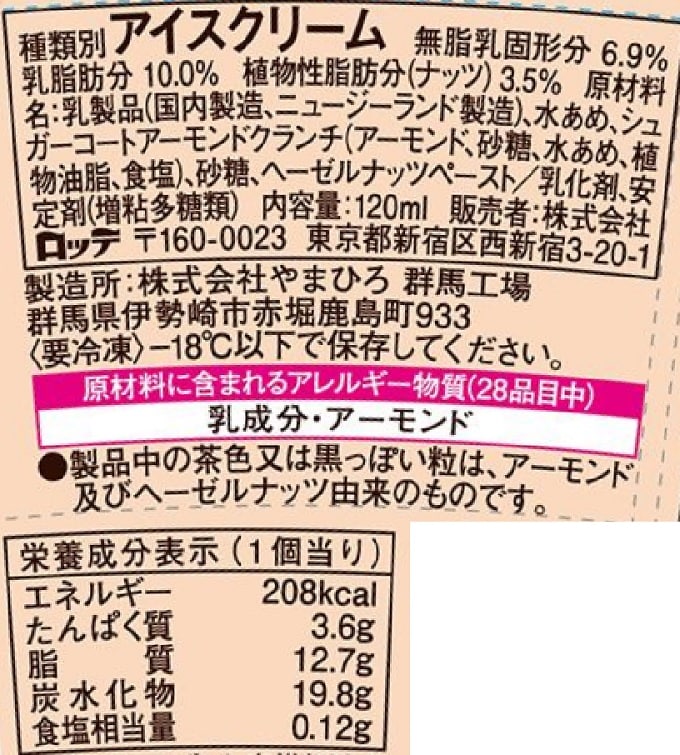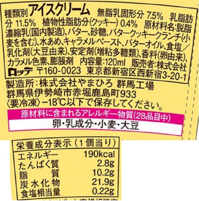 ※アイスクリーム類は、-18度以下での冷凍保存の状態では、品質の劣化が極めて小さい食品ということで、賞味期限の設定がされておりません。。