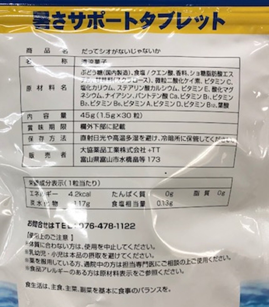 [50袋]大協薬品工業 だってシオがないじゃないか 45g(1.5g×30粒) | 熱中症対策の塩分チャージに